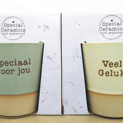 6 onderzetters met leuke of inspirerende teksten in een mooi doosje.